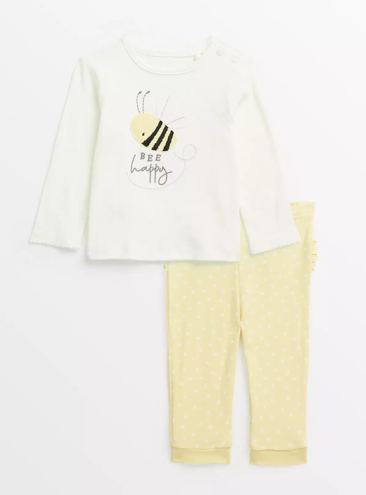 Add an adorable Bumblebee theme to their nightwear with our yellow pyjama set! Super cute and super comfy, our set includes 1 cream long sleeve top which has a ‘Bee Happy’ design on the front, as well as 1 pair of yellow bottoms which have a polka dot print!