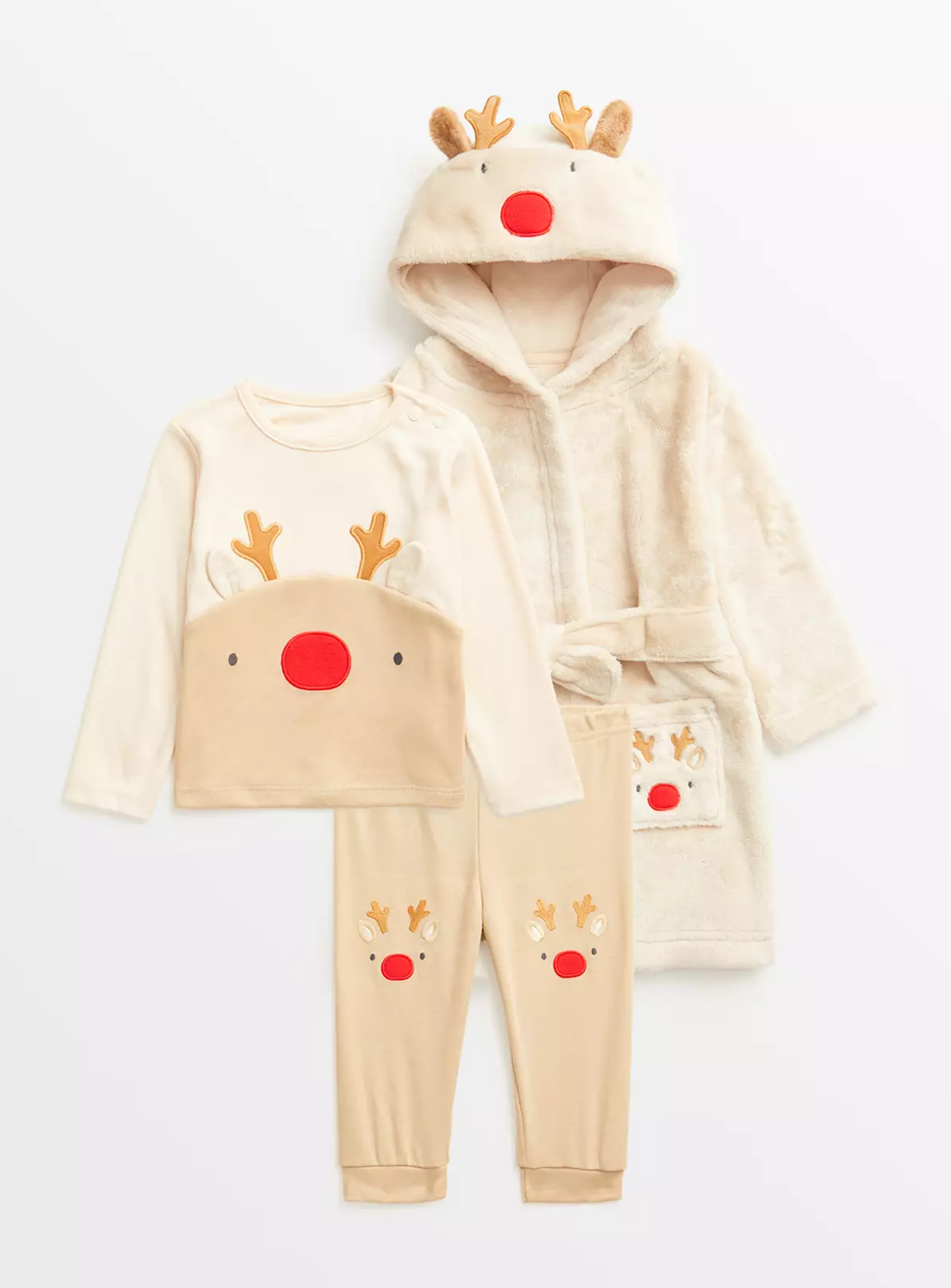 Beige Rudolph Reindeer Pyjamas & Dressing Gown 18-24 Months