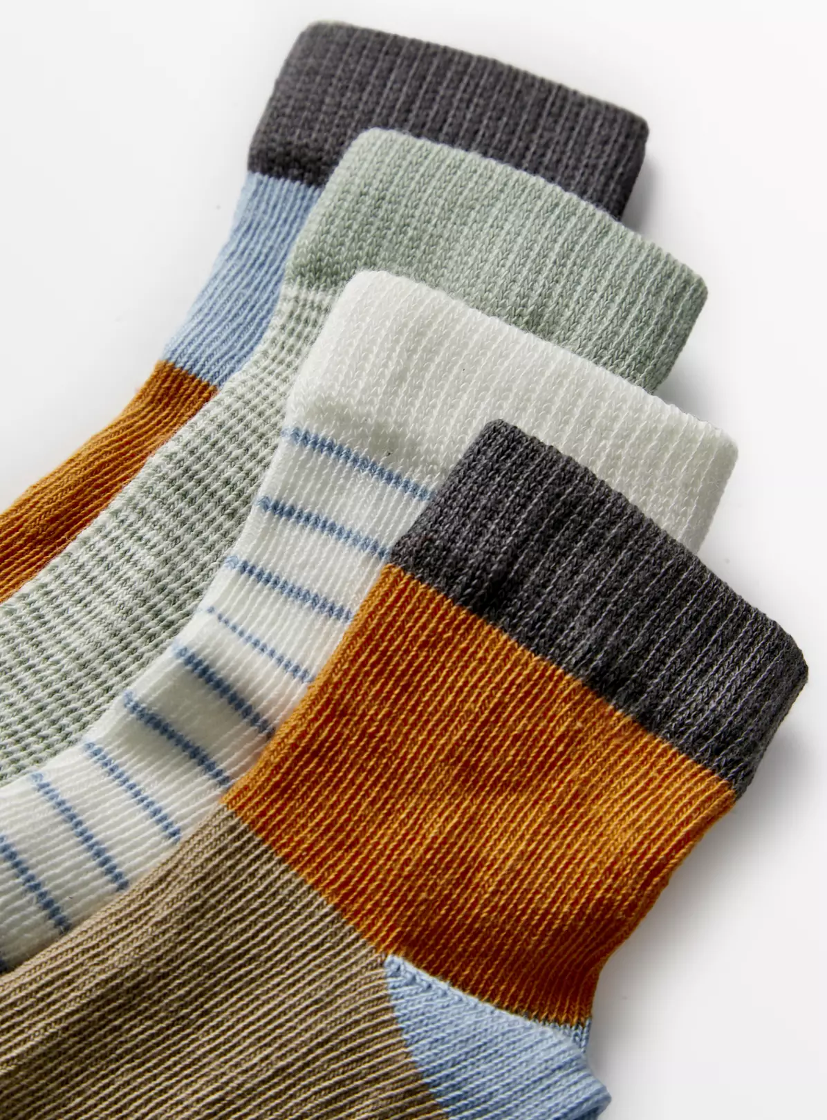 Add some colour to their sock collection with our 4 pack of ankle socks. Crafted from a comfy cotton-rich blend, it includes 2 colour block and 2 dinky stripe designs.