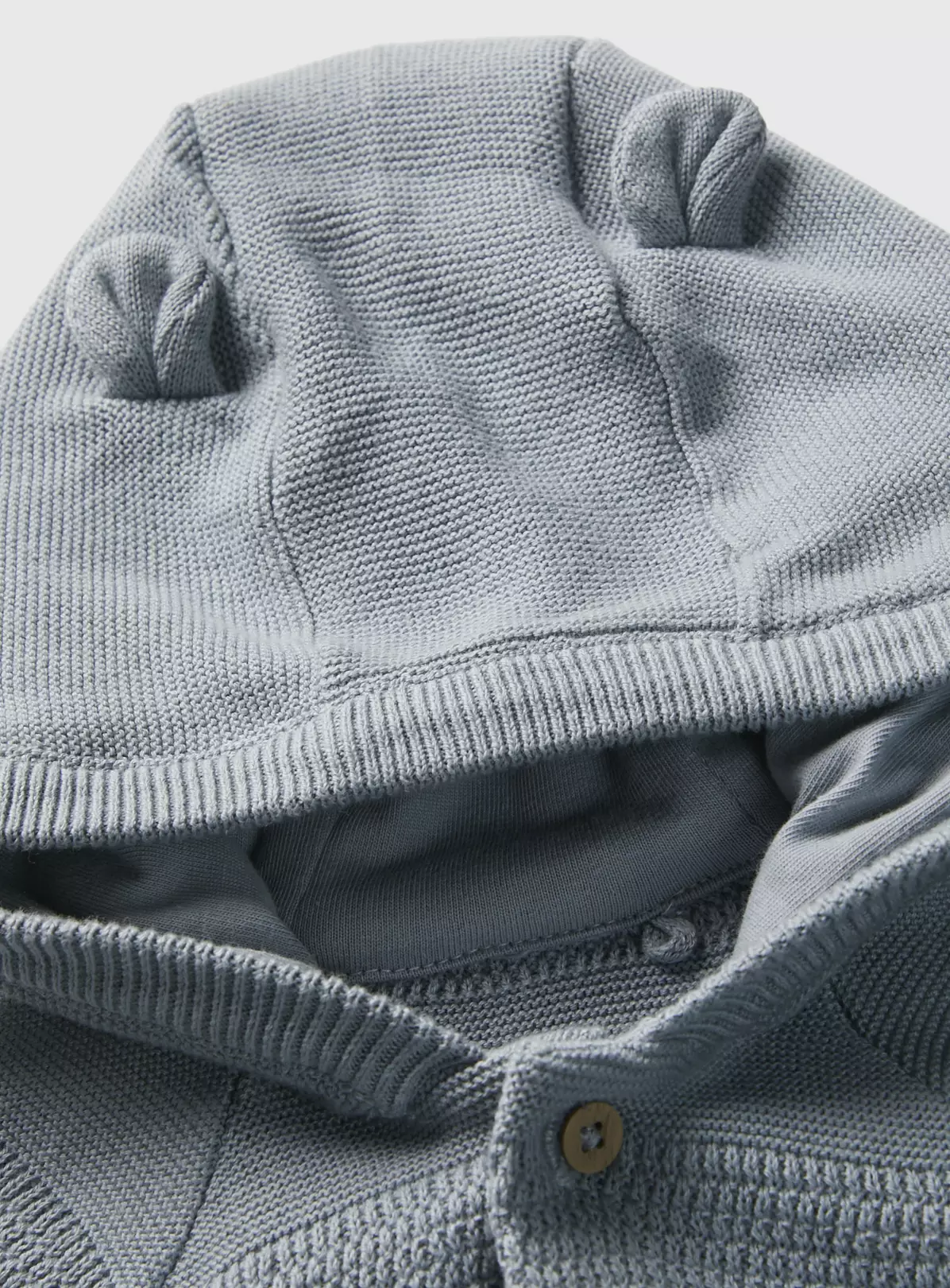 Stock up on cute knits for their winter wardrobe with our adorable blue hooded cardigan. Made from pure cotton, it has dinky little ears and features value fastening for easy everyday wear.
