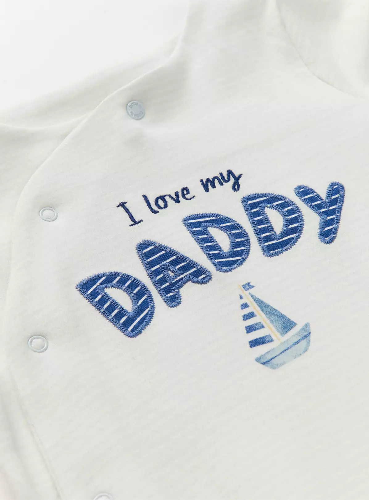 Pop this adorable sleepsuit in the basket and make their day for spring. With a blue stripe print, a cute sailboat detail and a sweet ‘I love my daddy’ slogan, their cuddle appeal is about to go through the roof.