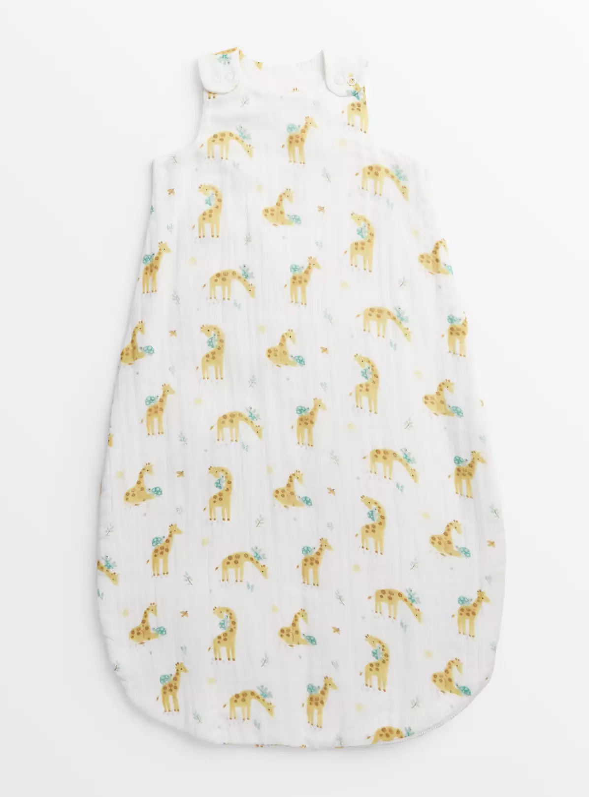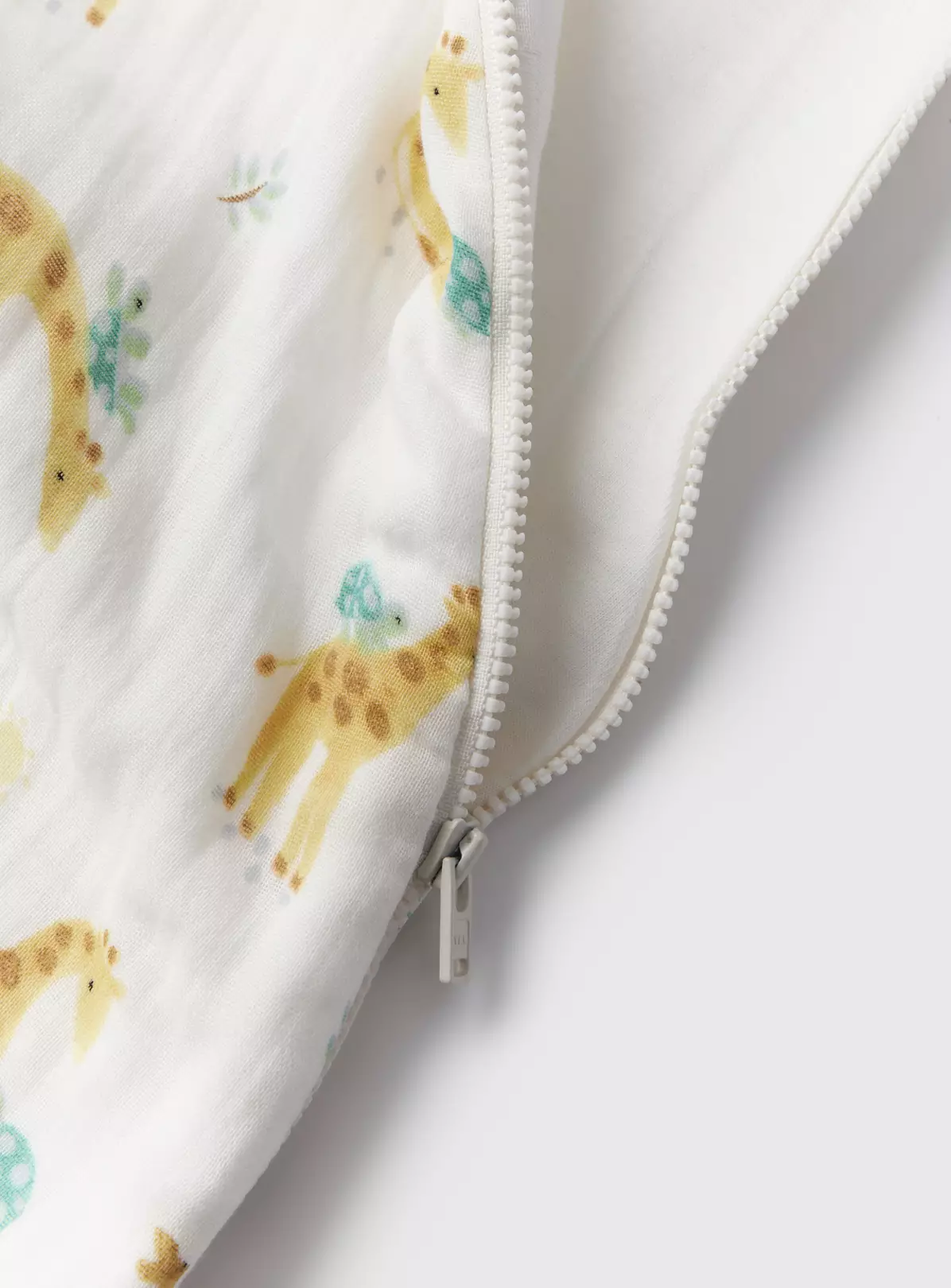 Wrap your little one up in our adorable sleeping bag. Featuring an all-over giraffe print, it also features popper fastening on the shoulders as well as a zip fastening at the side, designed so you can put it on and take it off with ease. In a 1.5 Tog rating, it’s an ideal option for summer and recommended in room temperature 21 °C to 23 °C.