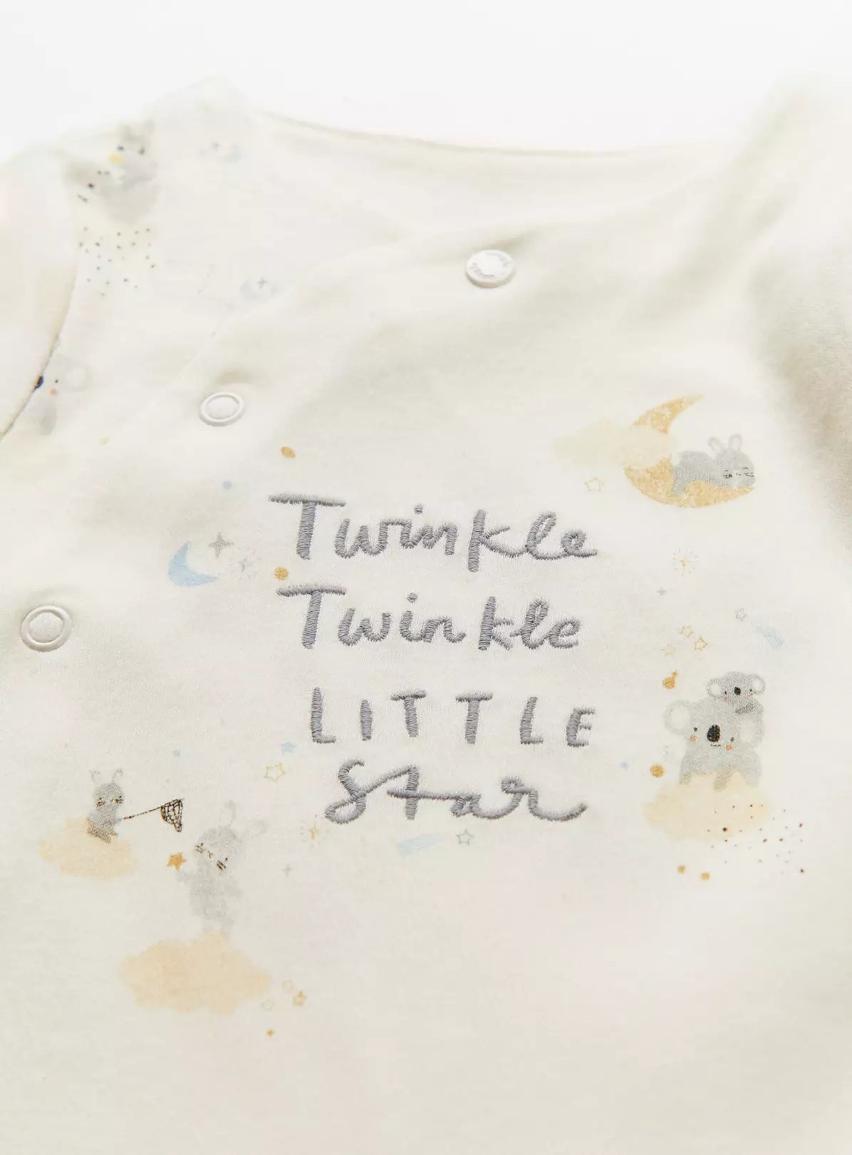 Wrap them up in our cosy cotton sleepsuit! Featuring a ‘Twinkle twinkle little star’ slogan on the front, it has long sleeves for a snuggly fit! For easy and hassle-free changes, it has popper fastening on the front.