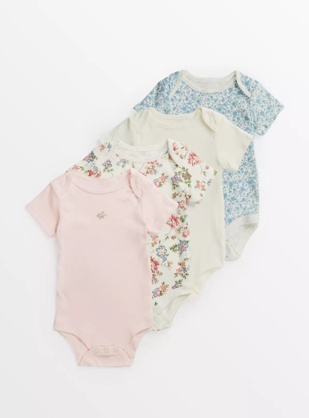 Floral Print Bodysuits 4 Pack Up To 3 Mths