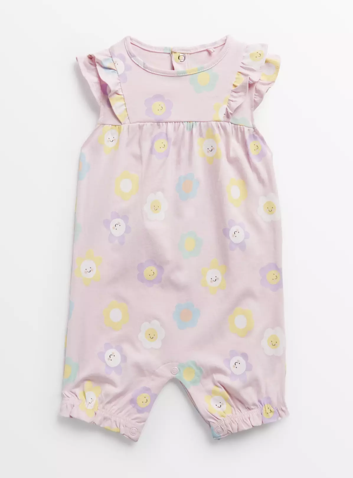 Crafted from pure cotton jersey, our adorable romper features a super cute pink flower print. In a traditional style, it features frilly sleeves and poppers below for easy changes.