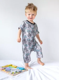 Fred & Noah shortie rompers are the perfect one-piece for any child. Featuring nickel free poppers under the crotch and on each shoulder this is the perfect outfit for playing in. Designed and made in the UK from 95% Cotton 5 % Elastane Jersey.