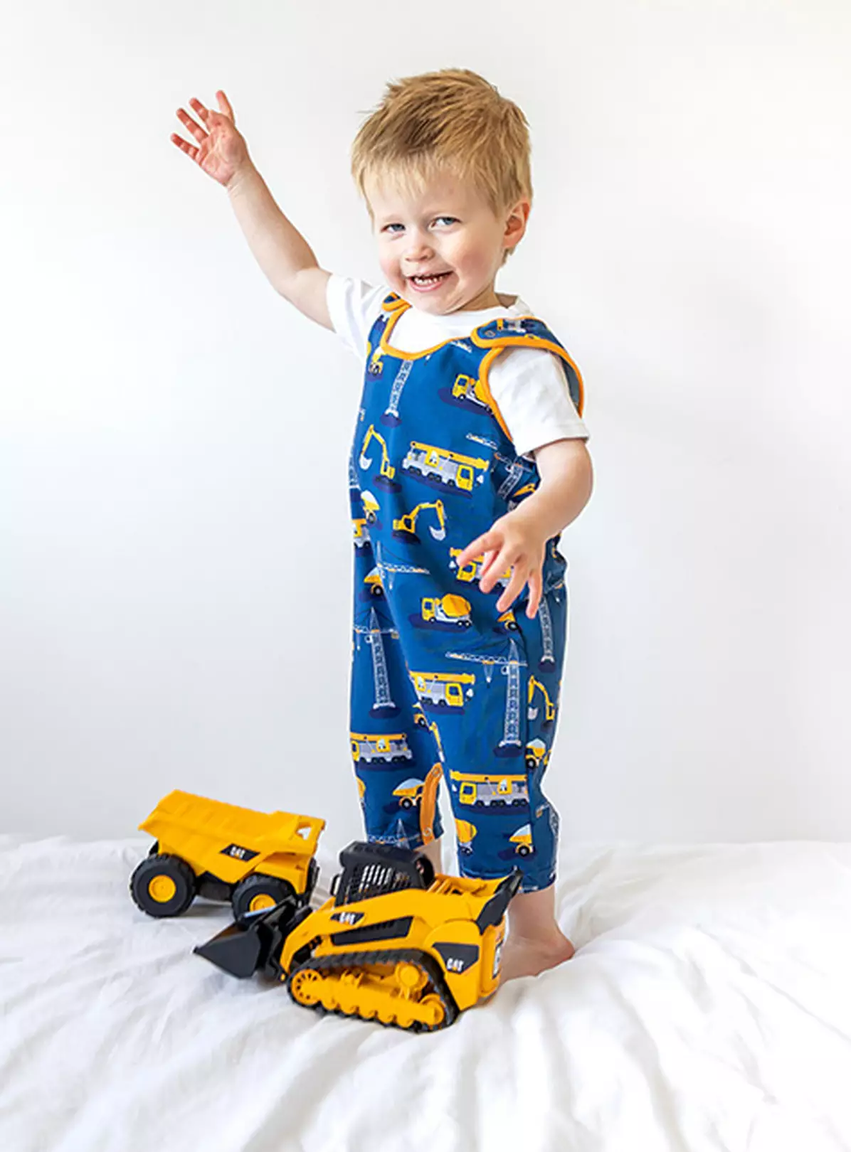 FRED & NOAH Construction Print Shoulder Popper Romper 2-3 Years