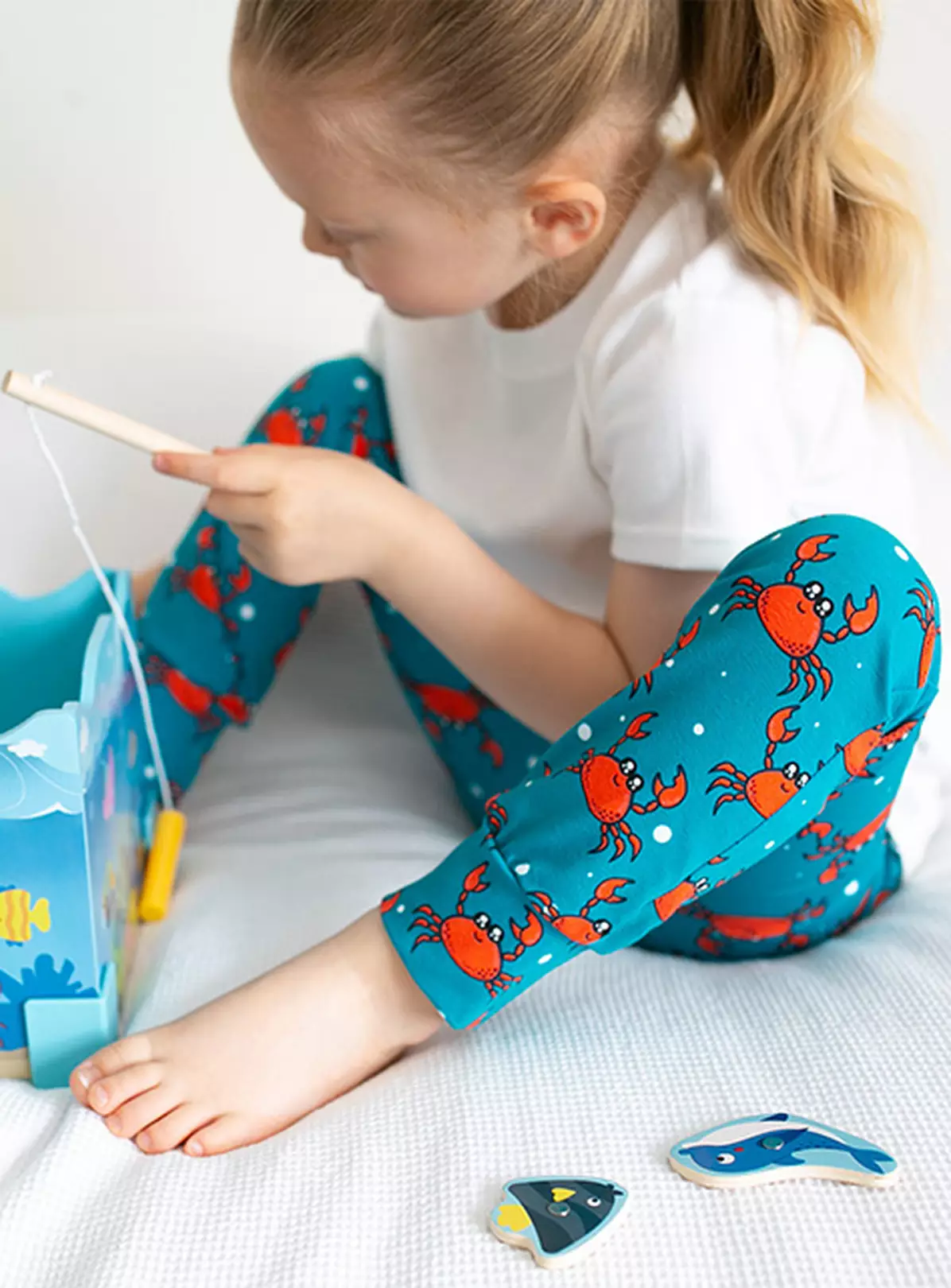 Fred & Noah baby leggings feature an enclosed non roll elasticated waist and are available in sizes 0-9, The leggings also feature a reversible ankle cuff which can be turned up for shorter babies whilst also keeping their little socks on. All of our styles are cut for both disposable and cloth nappies and can be mixed and matched with our range of hand printed vests and T shirts.