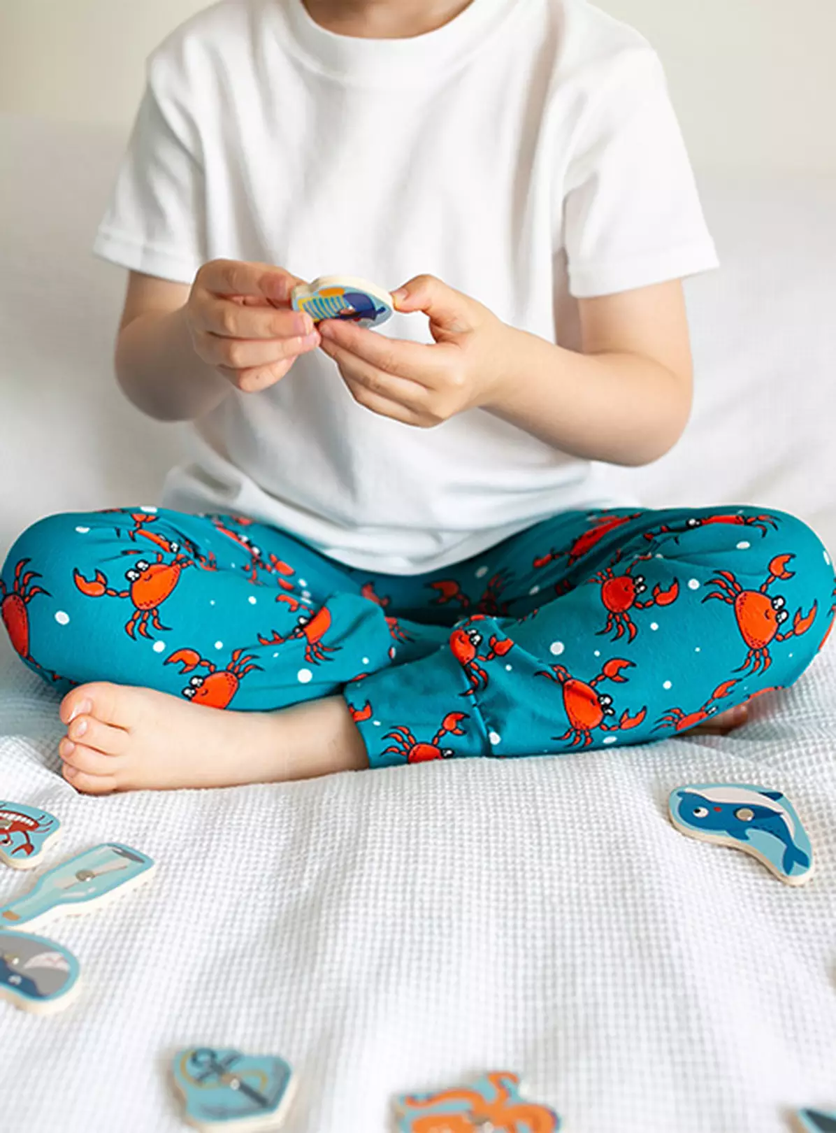 Fred & Noah baby leggings feature an enclosed non roll elasticated waist and are available in sizes 0-9, The leggings also feature a reversible ankle cuff which can be turned up for shorter babies whilst also keeping their little socks on. All of our styles are cut for both disposable and cloth nappies and can be mixed and matched with our range of hand printed vests and T shirts.