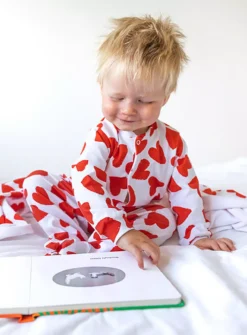 Fred & Noah sleepsuits are the perfect one-piece for any baby. Sizes newborn and 0-3 have built in scratch mittens and the suit is front opening with nickel free poppers.