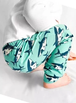 Fred & Noah baby leggings feature an enclosed non roll elasticated waist and are available in sizes 0-9, The leggings also feature a reversible ankle cuff which can be turned up for shorter babies whilst also keeping their little socks on. All of our styles are cut for both disposable and cloth nappies and can be mixed and matched with our range of hand printed vests and T shirts.