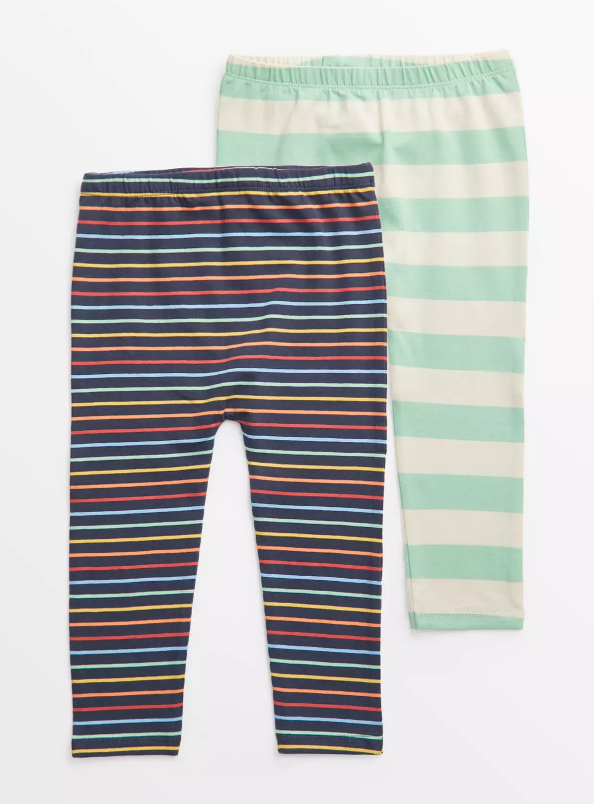 Green & Rainbow Stripe Leggings 2 Pack 9-12 Months
