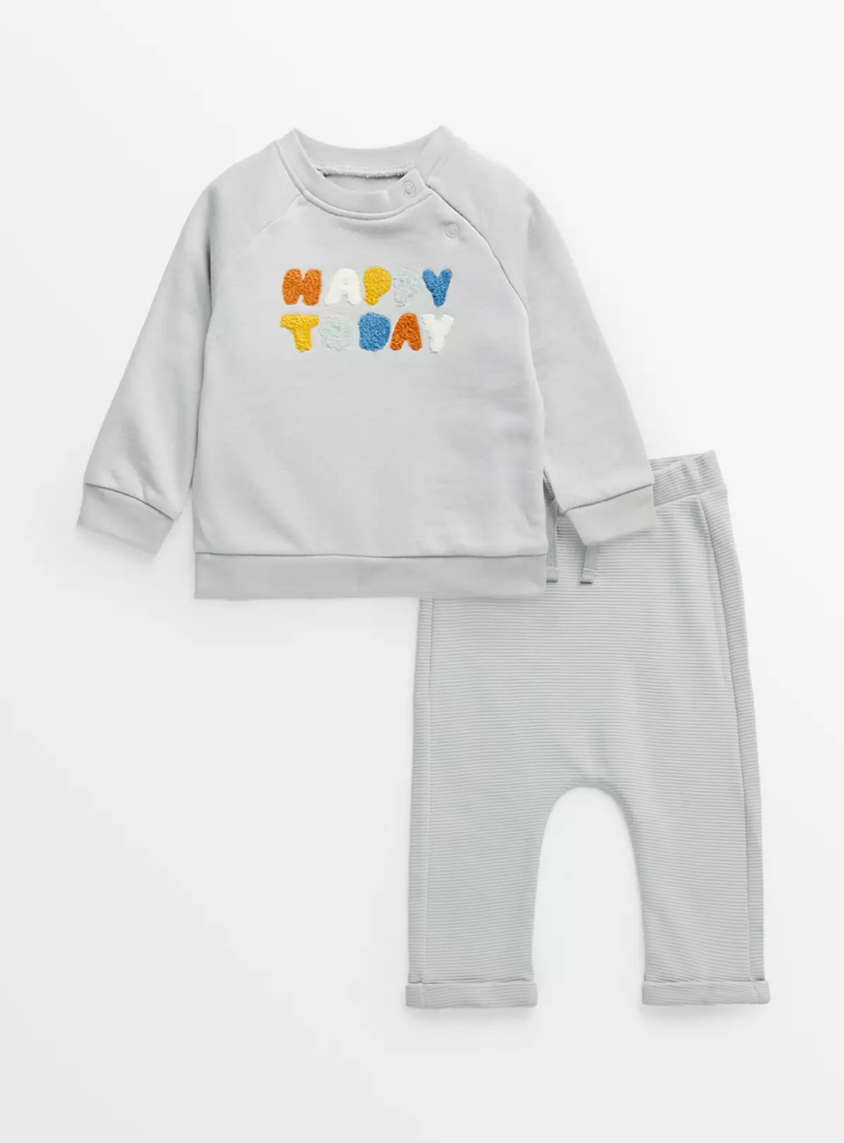 Grey Happy Today Sweatshirt & Joggers Up To 3 Mths