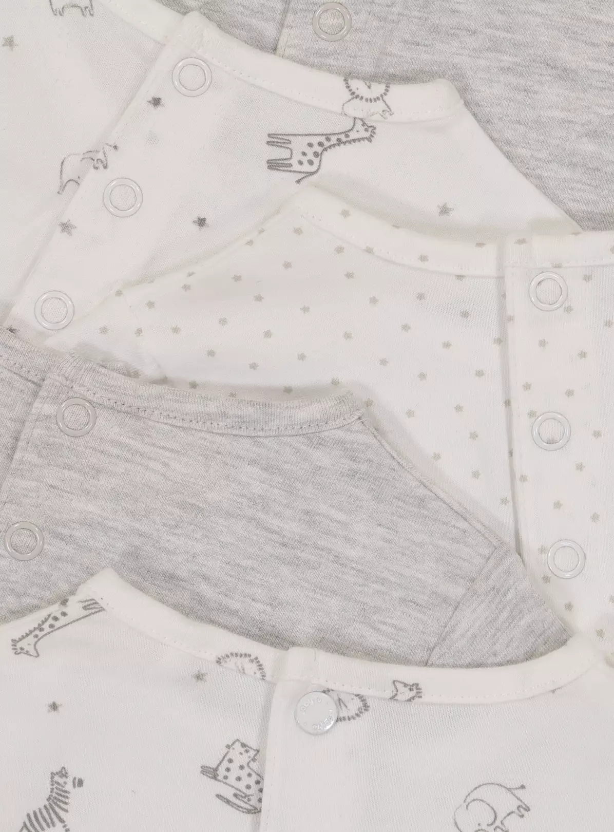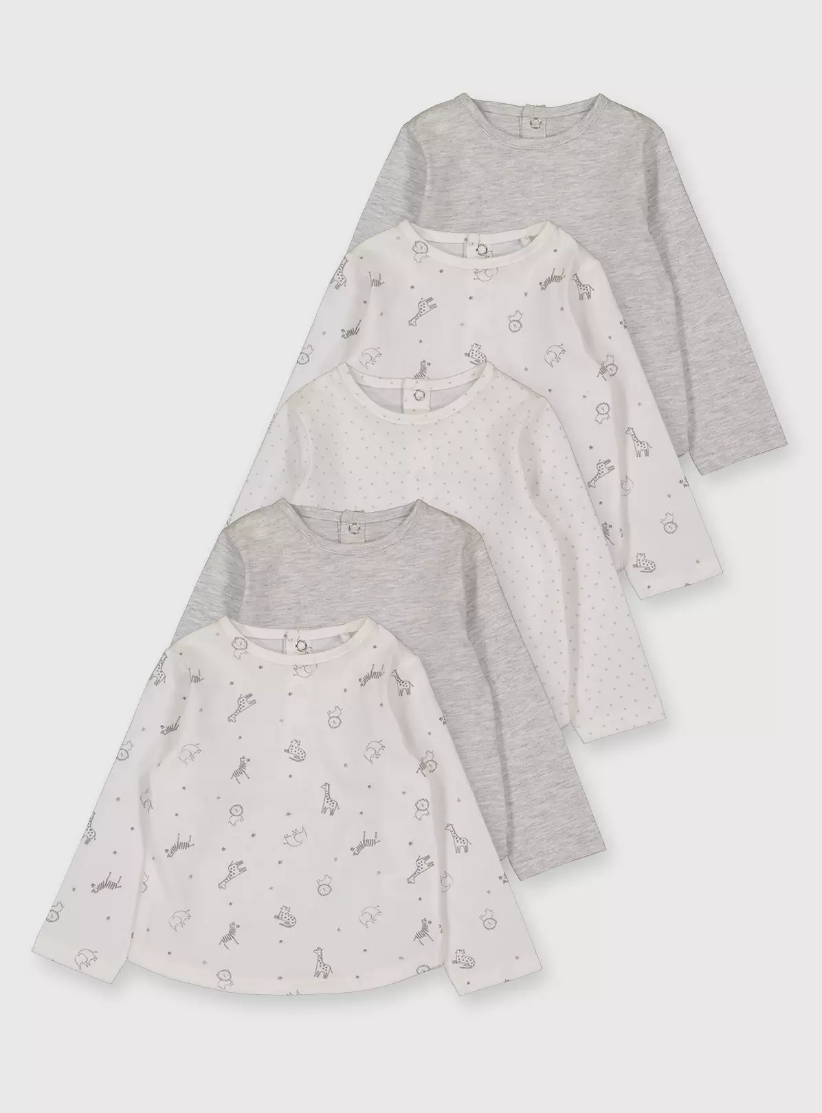 Grey & Safari Print Long Sleeve Tops 5 Pack – Up To 3 Mths