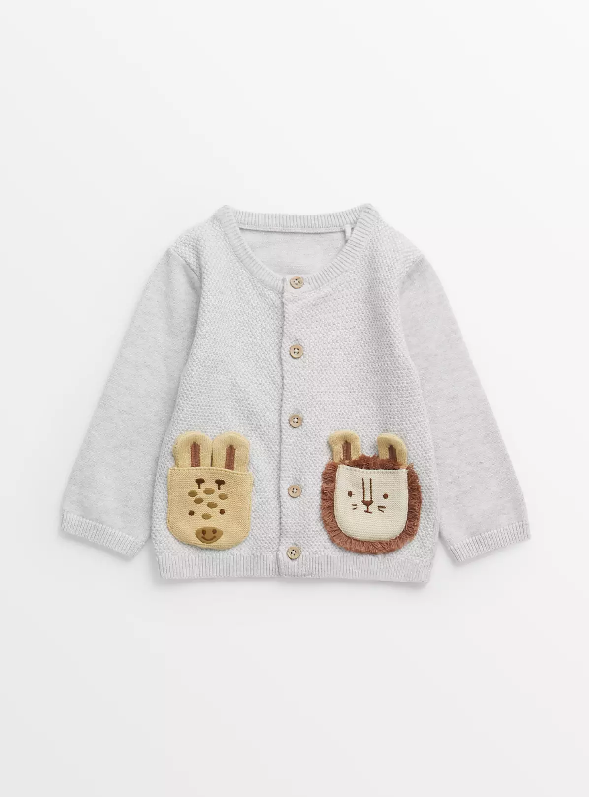 Grey Zoo Animal Pocket Cardigan 6-9 Months