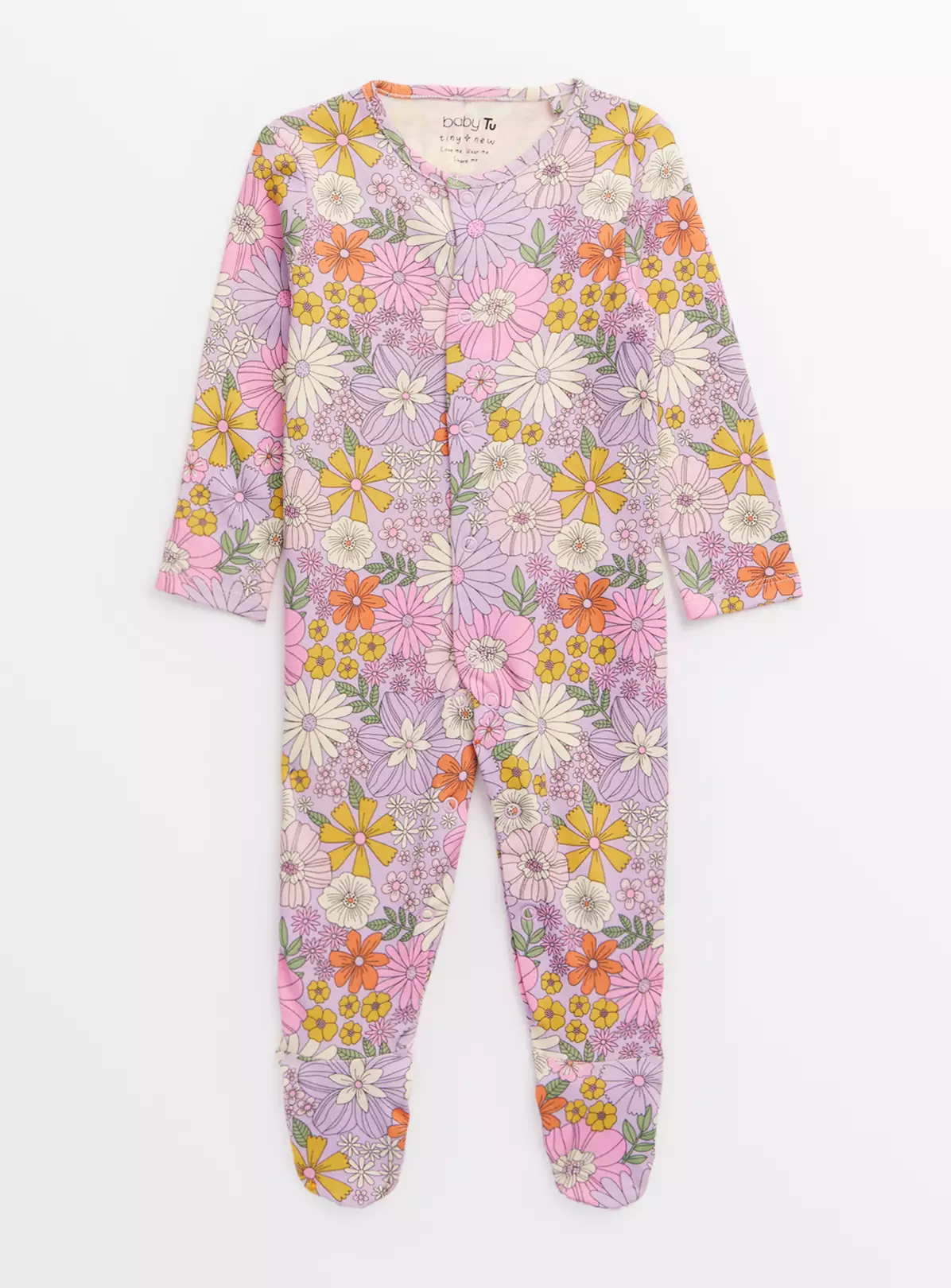 Stock up on spring themed nightwear for your little one with our lilac long sleeve sleepsuit! It comes in a vintage-style floral print and features popper fastening on the front, designed for easy and hassle-free changes.