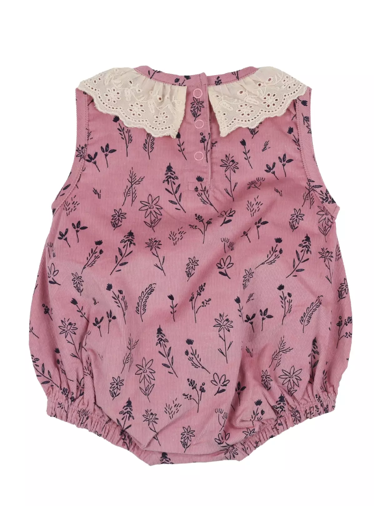 Our organic cotton baby rompers are designed to keep your little one’s non-seasonal wardrobe suitable for adventures & snoozing. Our floral cord frill baby girls romper is made from our super-soft 100% GOTS organic cotton and is kind to delicate skins and the environment too! Your baby will adore this eco-friendly and sustainable bubble romper to bits – especially with our stunning vintage frill neck detailing, adding a pretty finish!Sustainable and eco-friendlyNickel-free popper fastenings to the crotch & neck for easy on-the-go dressingComfortable soft elastication to the legs