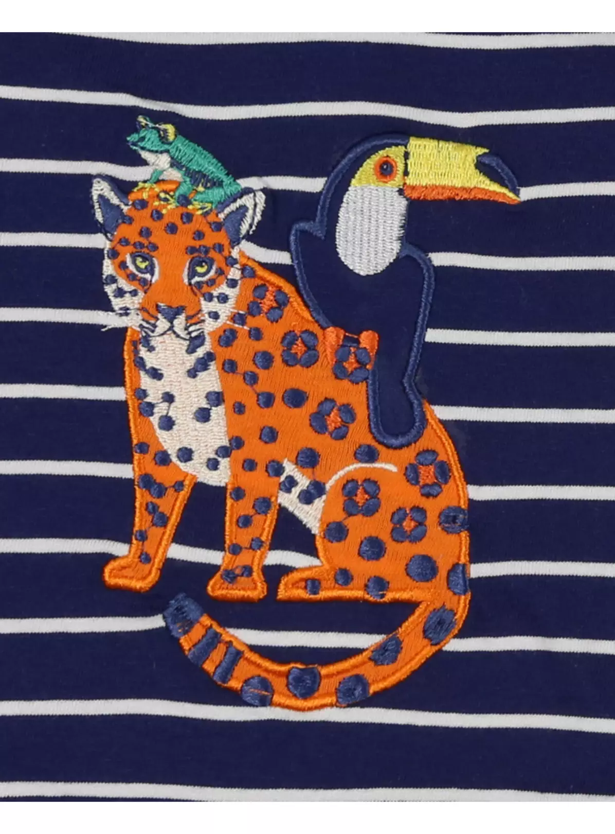 - Embroidered chameleon and toucan characters