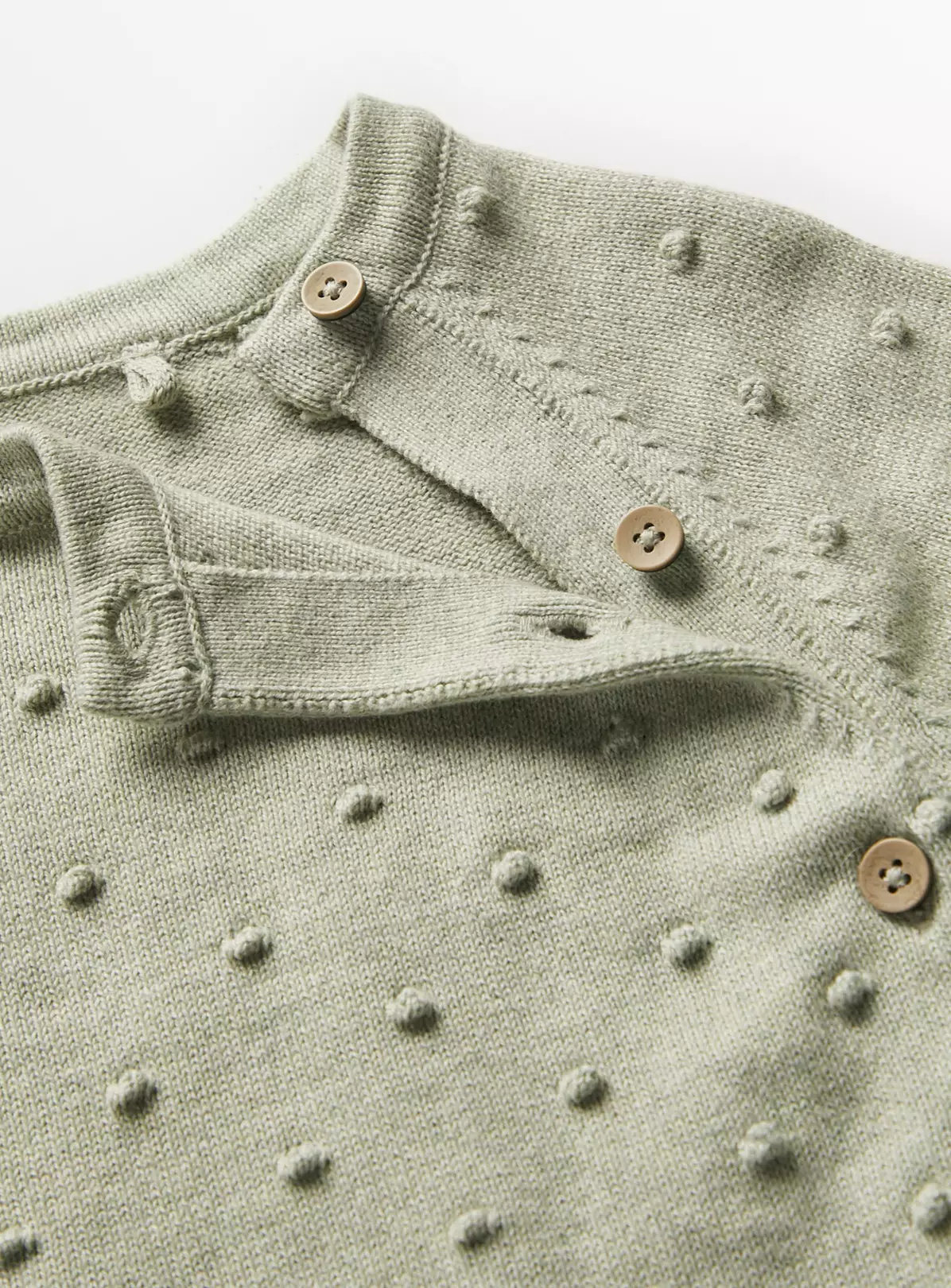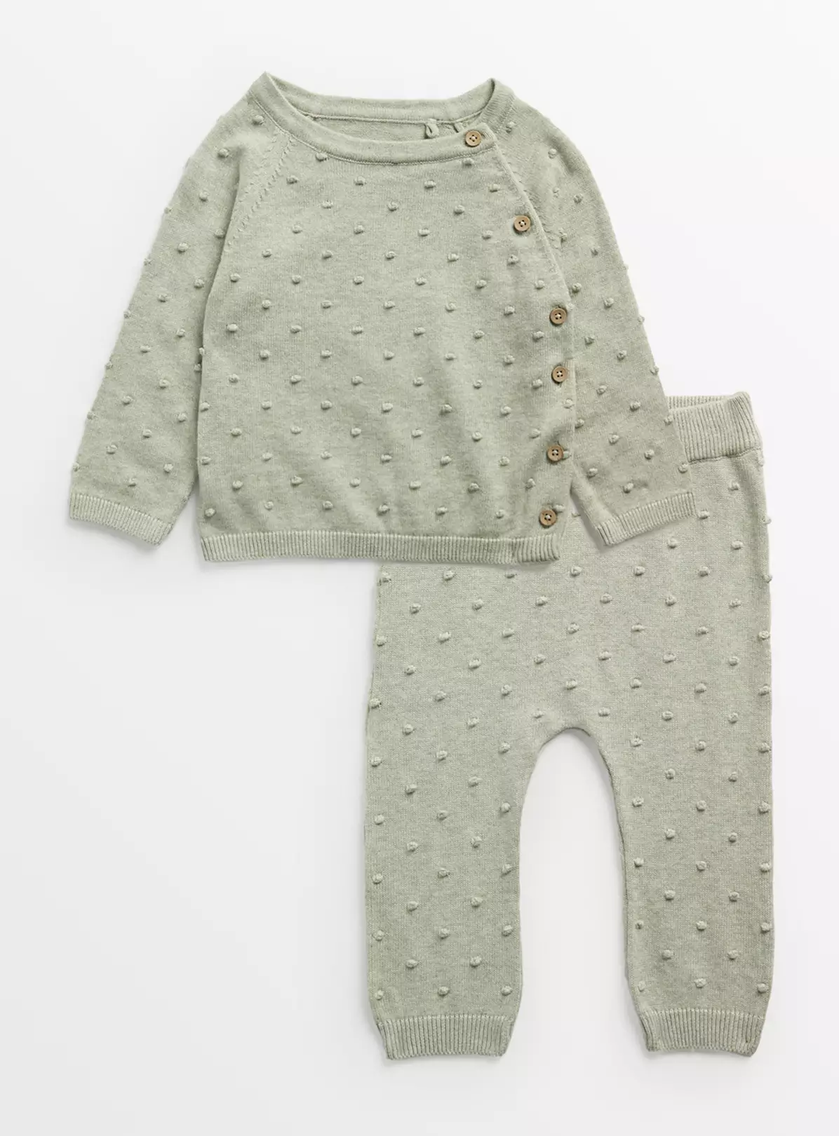 Super cute and super comfy, our knitted set includes a dinky jumper which features a lovely mint green bobble design, as well as a pair of knitted bottoms to match. Crafted from a pure cotton yarn, it’ll be sure to keep your little one cosy all day long!