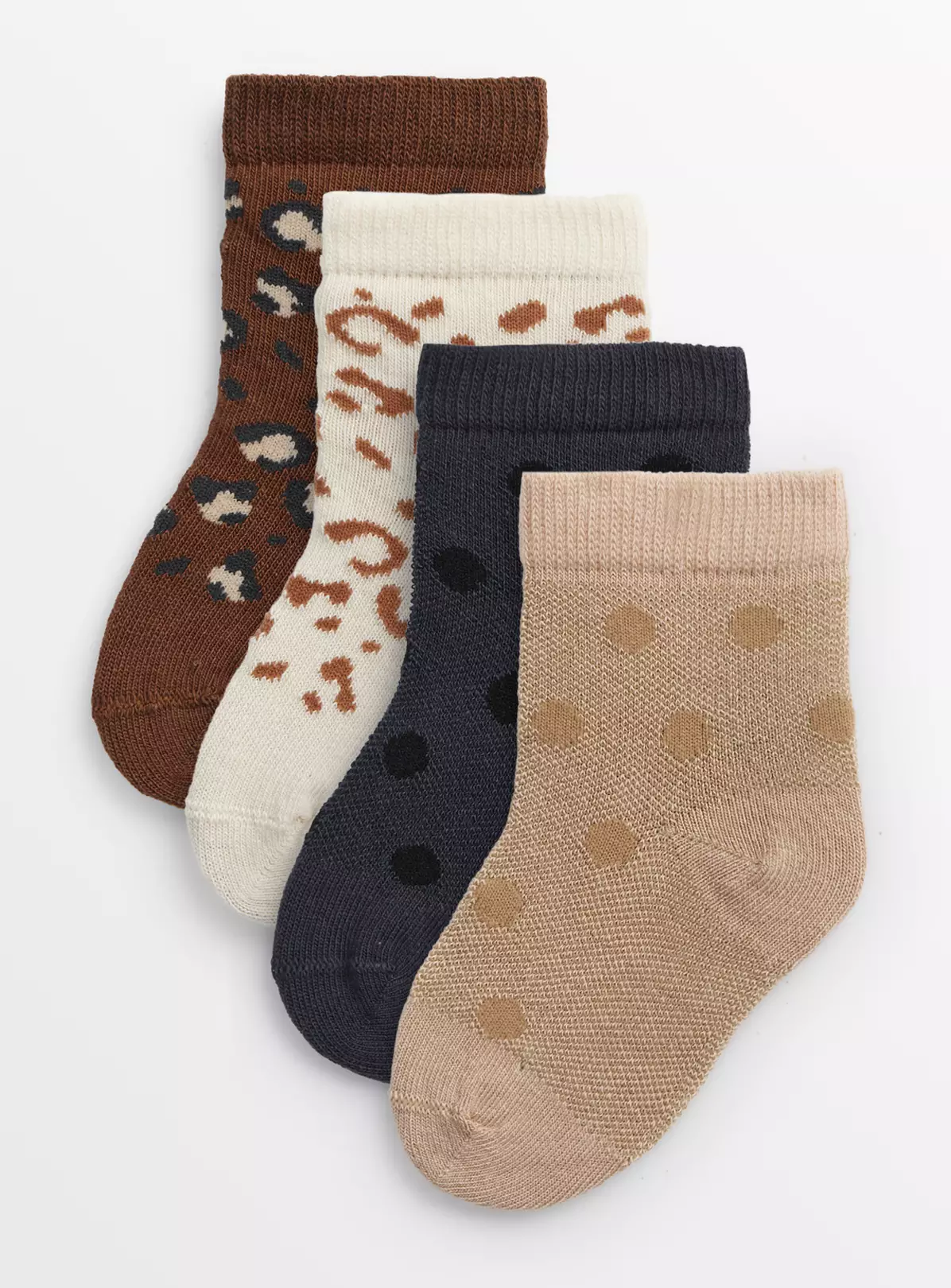 Neutral Leopard Print Socks 4 Pack 6-12 Months