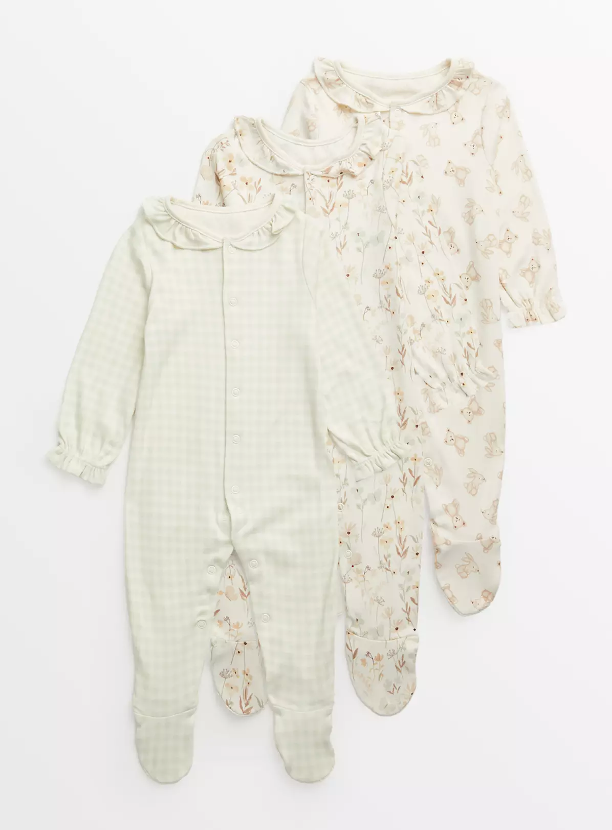 Neutral Traditional Print Sleepsuit 3 Pack9-12 Months