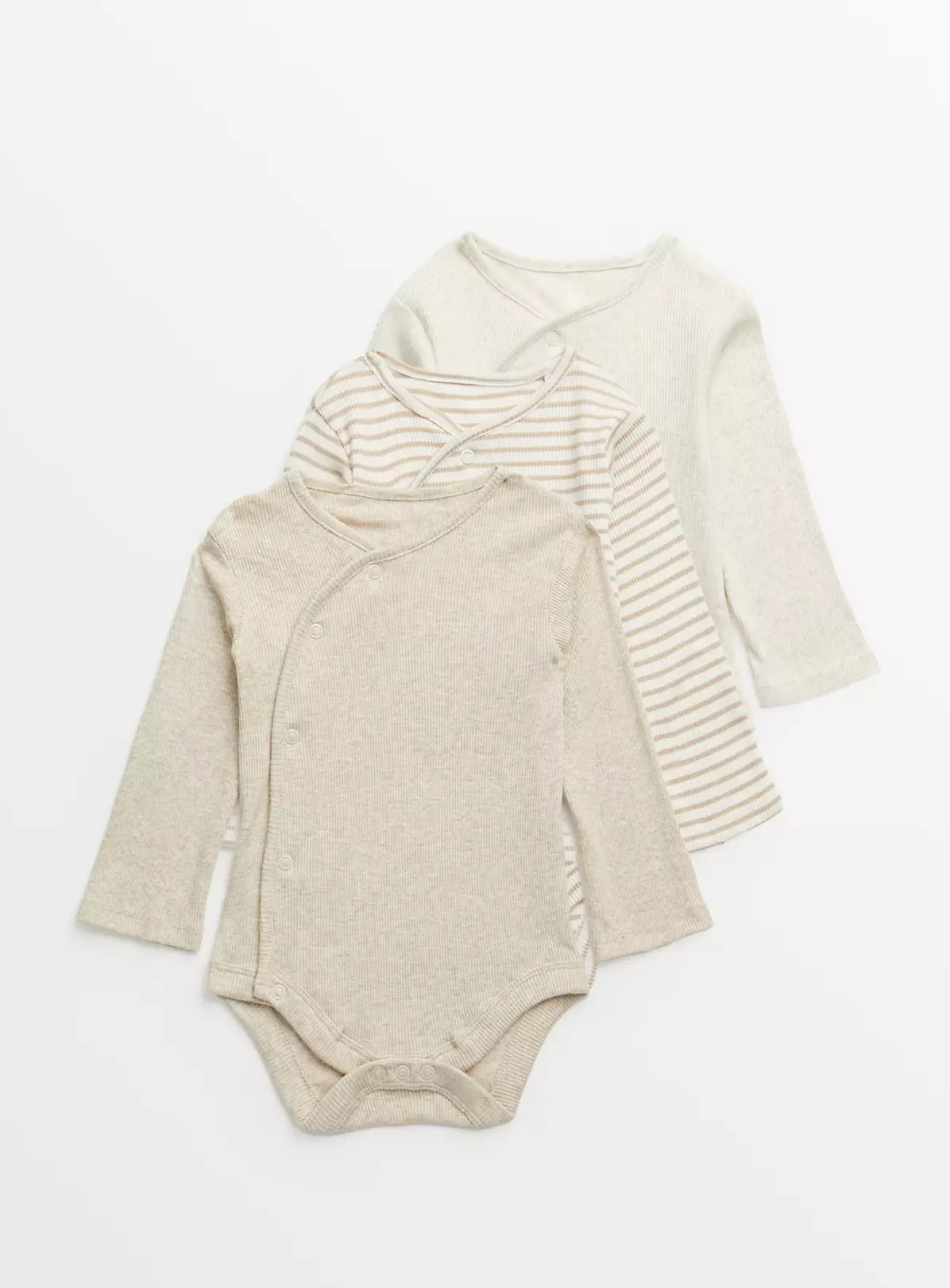 In a handy pack of 3, our bodysuits come in a variety of designs elevated by oatmeal shades. This pack includes 1 oatmeal stripe, 1 oatmeal and 1 light beige bodysuit. Crafted from cotton, they’re a cute and comfy addition to their mini collection.