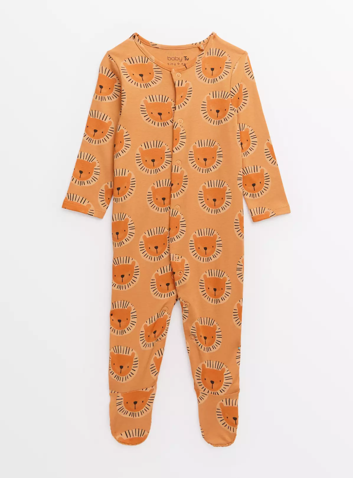 Our tiger print sleepsuit adds a fun touch to their nightwear collection! In orange, it features an all-over tiger face design and has popper fastening on the front for hassle-free changes.