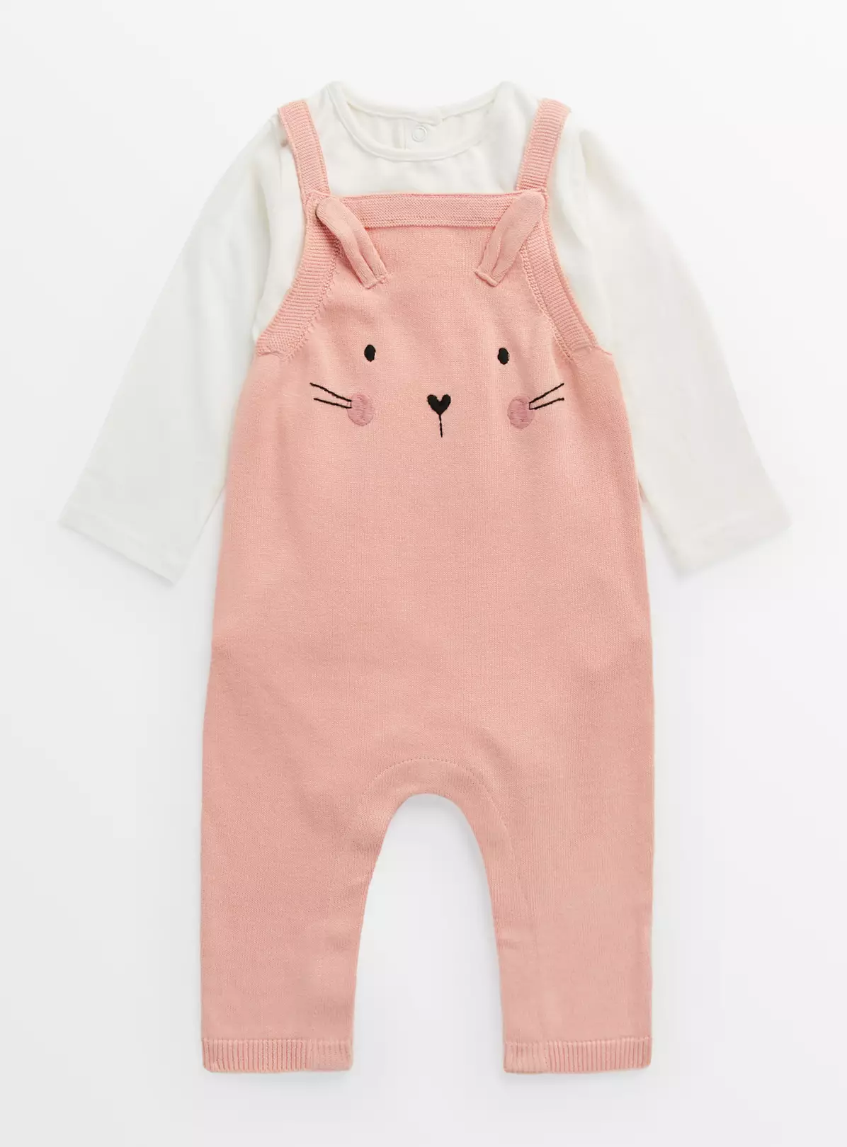 Pink Knitted Bunny Dungarees & Bodysuit 9-12 Months