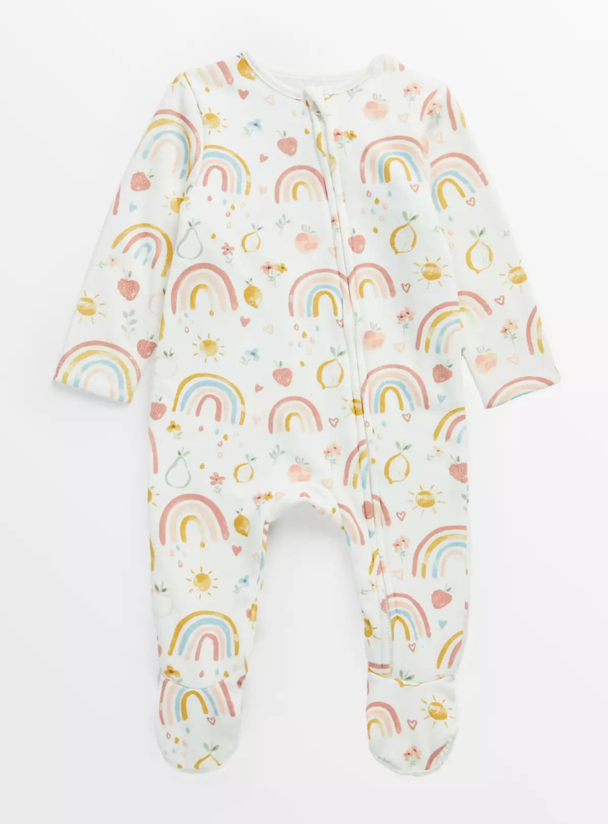 Send your little one off to sleep in snuggly style with our adorable rainbow print sleepsuit. With a cosy fleece lining and a zip fastening for easy dressing.
