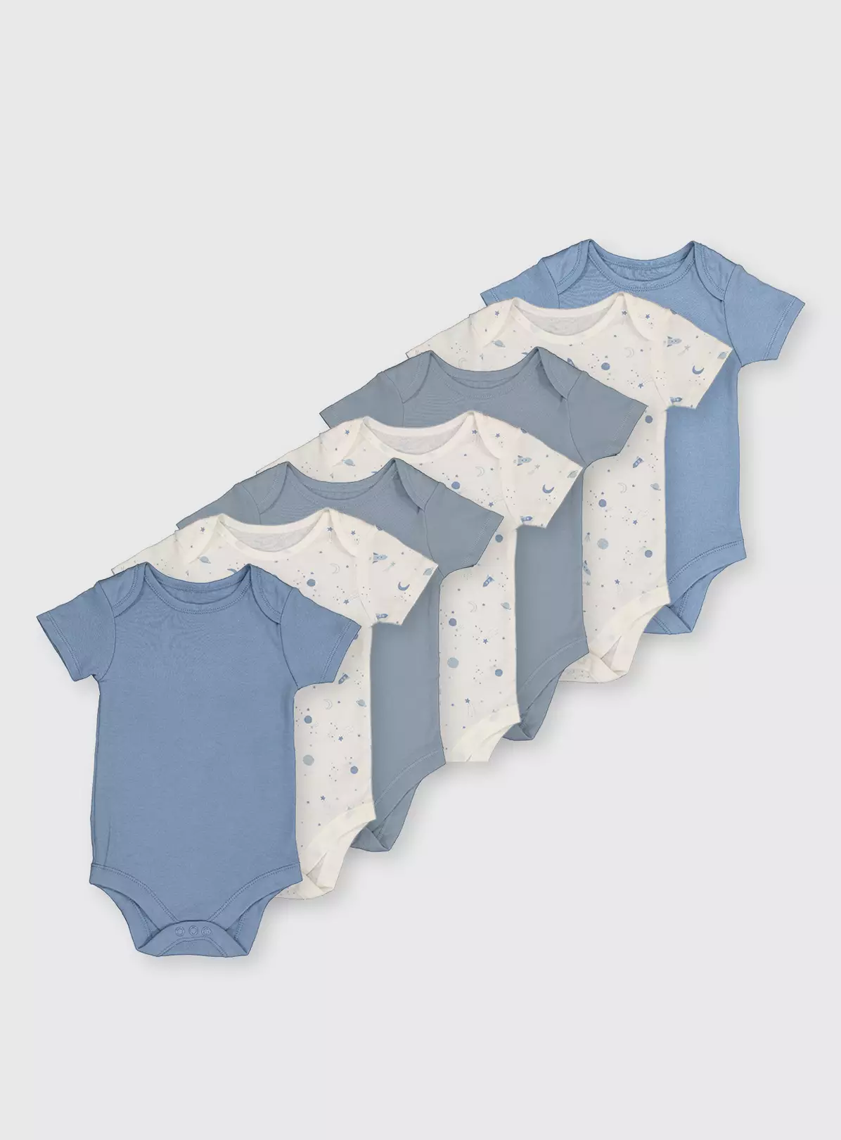Designed with soft flat seams to keep your baby’s skin protected & comfortable, this pack of 7 bodysuits with envelope-style neckline for easy changing are great for taking over the head or rolling down the body. All are finished with poppers for quick and easy nappy changes.