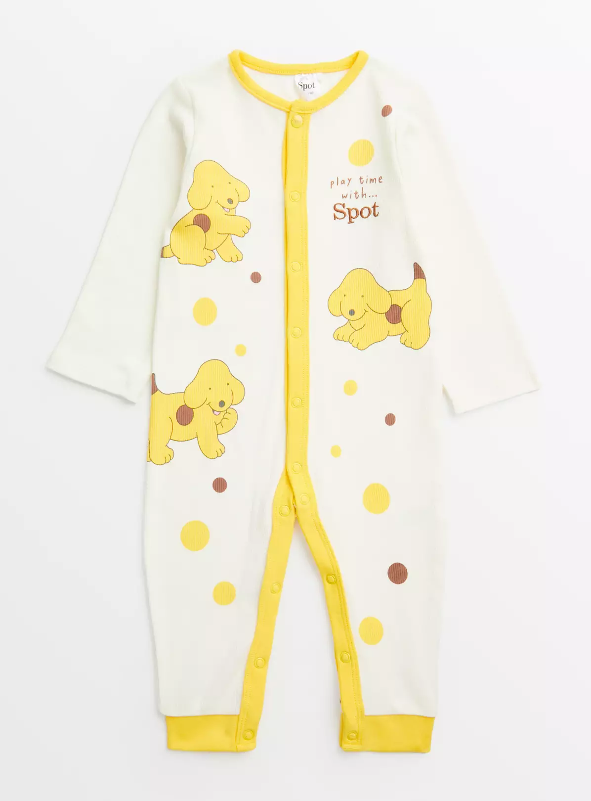 Stock up on adorable nightwear for your little one with our sweet Spot The Dog sleepsuit. In pretty shades of cream and yellow, it’s made from pure cotton (excluding cuffs) and features handy popper fastenings. What’s not to love?