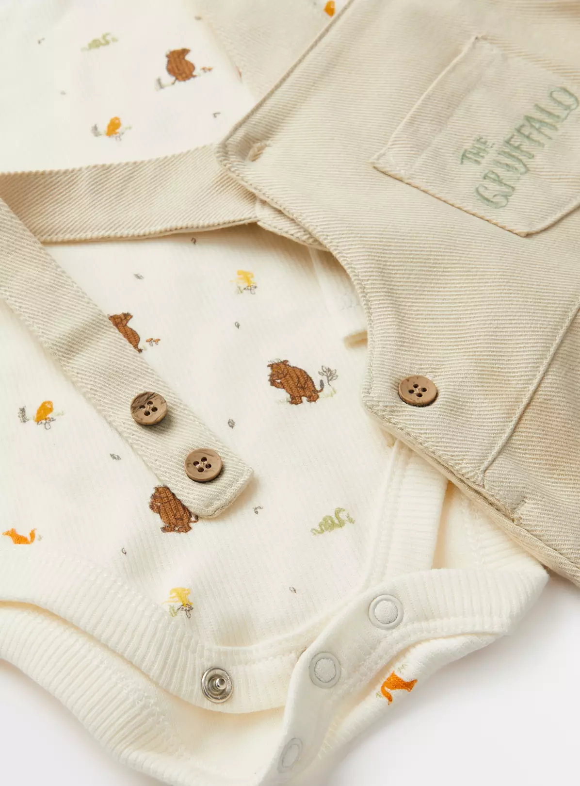 Inspired by the iconic book The Gruffalo, our cream denim dungarees feature a Gruffalo design and have value fastening for hassle-free changes. This set also includes 1 comfy cotton bodysuit to match.