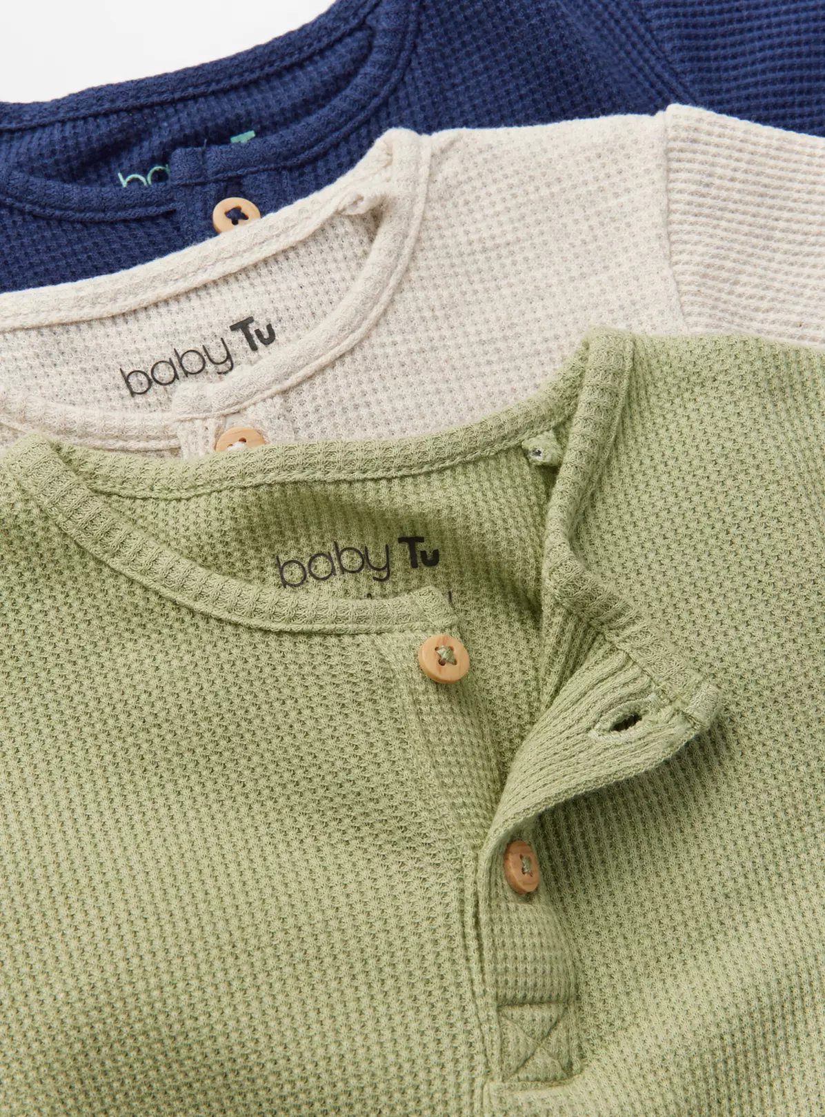 In a handy pack of 3, our waffle bodysuits are perfect for the warmer weather. Including 1 beige, 1 green and 1 navy, they all feature short sleeves and have popper fastening below for hassle-free changes.