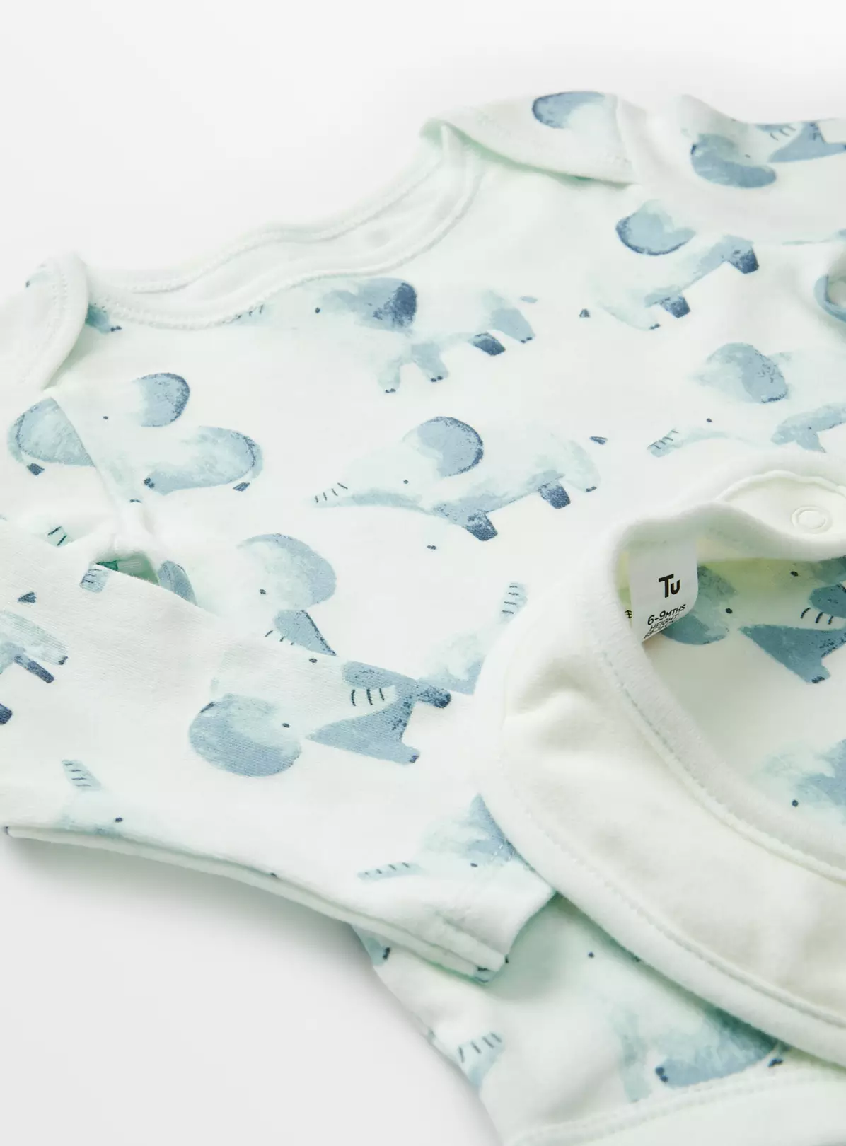 A lovely present for expecting parents and a wonderful way to introduce yourself to their new arrival, this adorable 4 piece bear print starter set is crafted from pure cotton for maximum softness. Consisting of a long sleeved bodysuit, one long sleeve sleepsuit, a cute bib and a hat. Designed with poppers for quick and easy nappy changes, it’s finished off with an adorable bag to keep it all in.