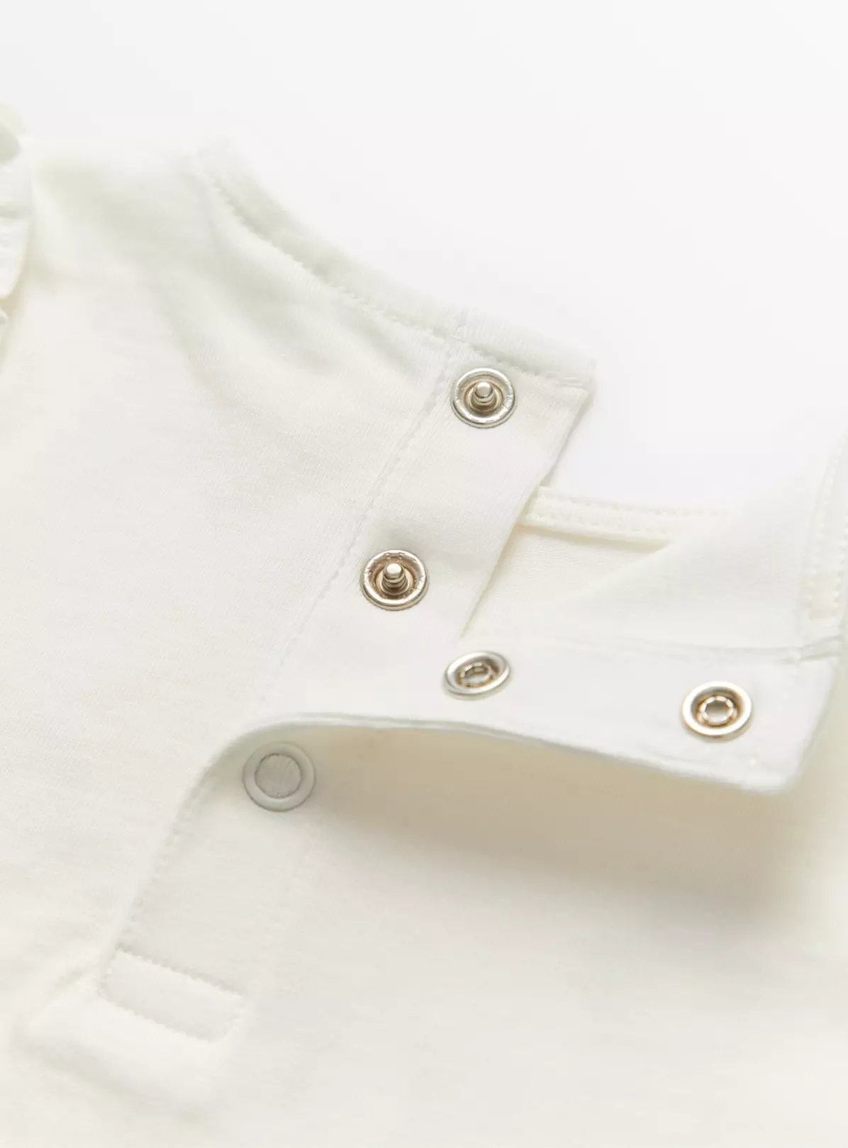 You’ll love our super cute white tee. Perfect for Mother’s Day, it has a classic round neck with frilly shoulders, long sleeves and features the slogan ‘My Mummy Makes Me Smile.’ Now just wait for the snuggles!