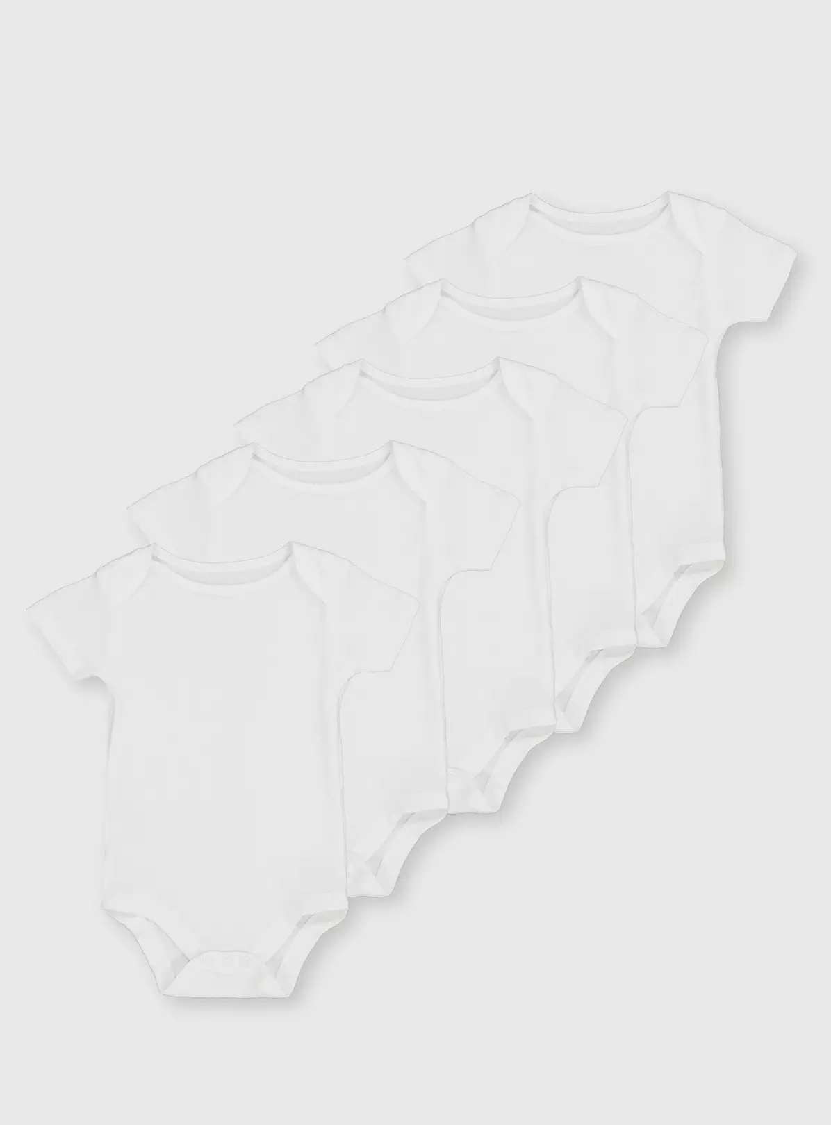 Designed with soft flat seams to keep your baby’s skin protected & comfortable, this pack of 5 classic white bodysuits with envelope-style neckline for easy changing are essentials. Great for taking over the head or rolling down the body, all are finished with nickel-free poppers to protect delicate skin and for quick and easy nappy changes.